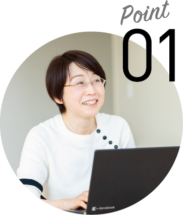 育児中の職員においては、勤務時間が通常より短い「時短」制度を活⽤したり、時間外勤務のない業務を担えるなど、男⼥問わず育児と仕事の両⽴をサポート。ライフステージが変わっても、退職することなく勤務を続けられます。実際、育児中・育児経験者の職員も多く、管理職に就く⼈もいます。